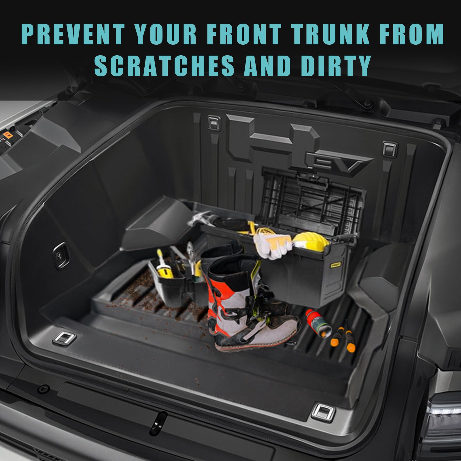 Function: Protect your frunk from spills, scratches and debris. Raised edge fits your Hummer EV contour perfectly. Designed with a texture to make it scratchproof. A perfect solution to protect your Hummer EV.