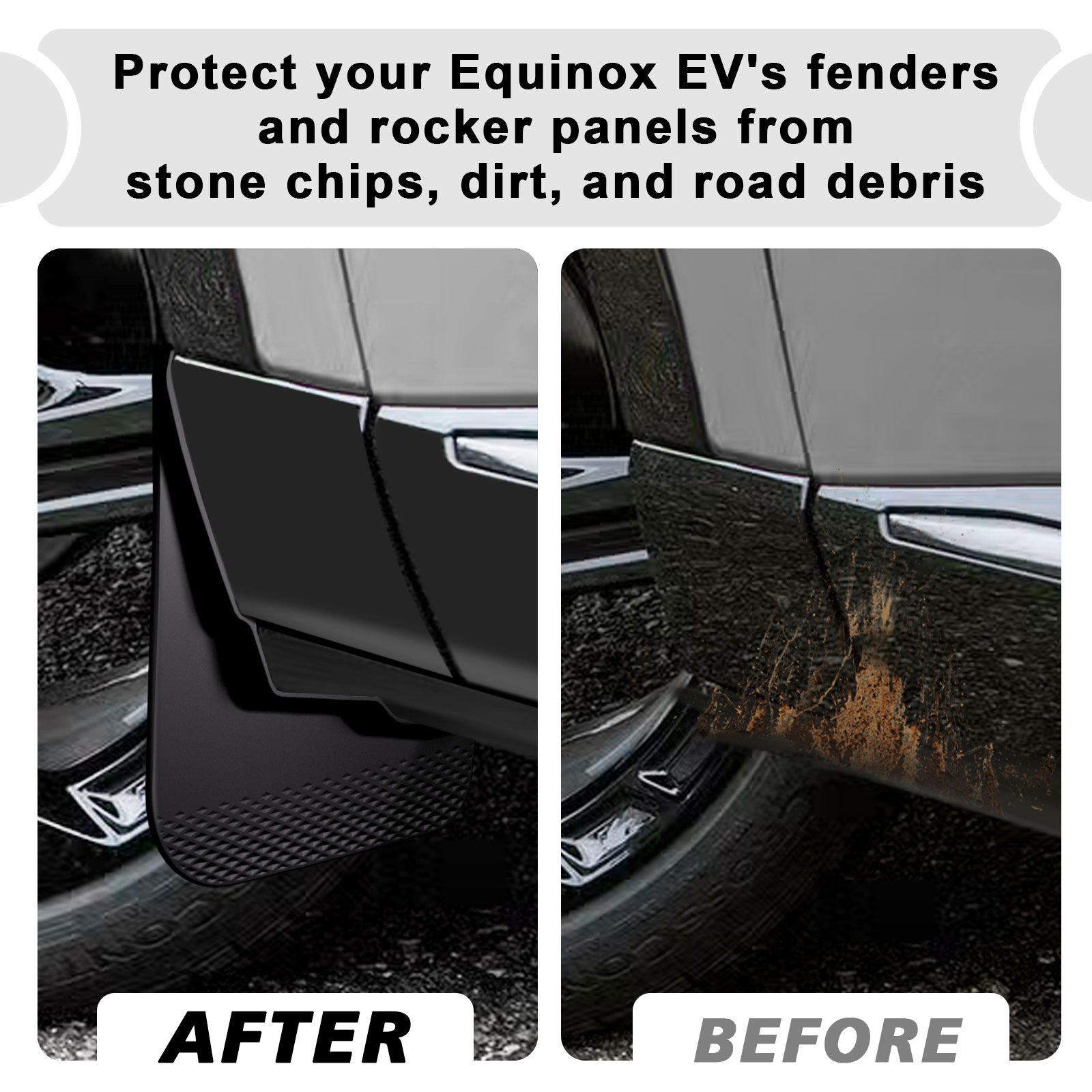Custom Fit: BestEvMod compatible with Chevrolet Equinox EV 2024+ Mud Flaps are designed according to the original vehicle in 1:1 to make sure it fits your Equinox EV 2024+ perfectly.