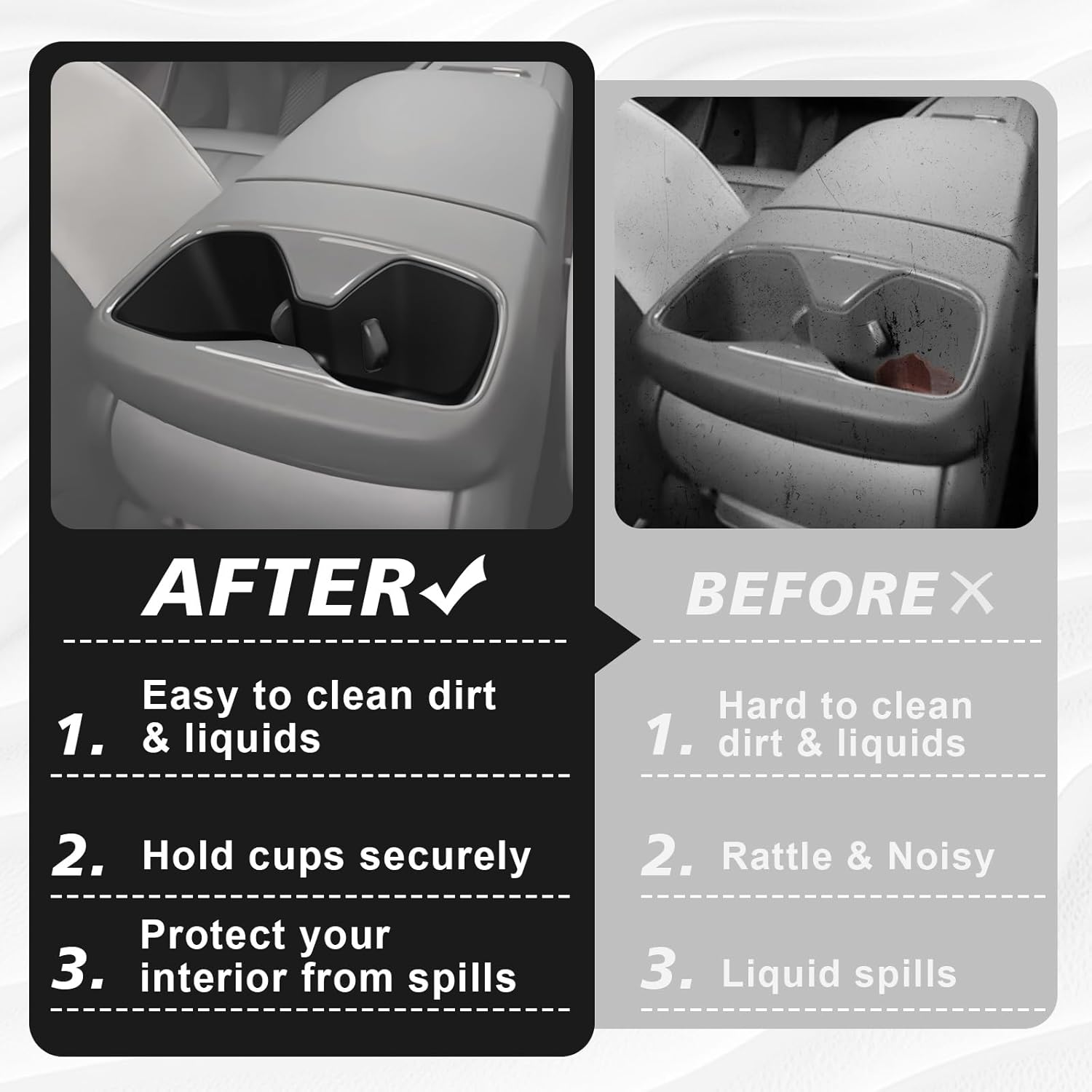 - Function: Maximize the storage space while keeping your cup in place without rattling. Perfectly organize your items neatly. Easy to clean, effortlessly keeping your cup holder area tidy. Provide full protection for your interior against scratches and damage.