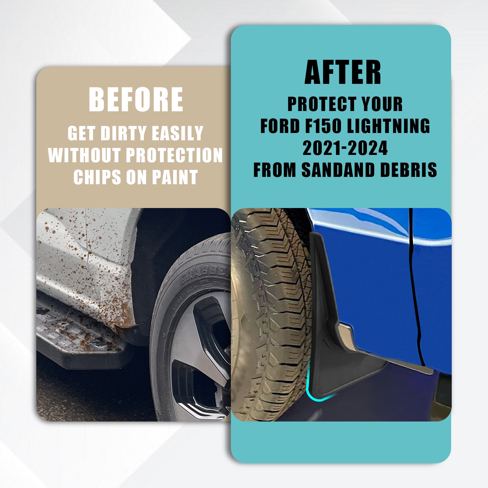 F-150 Lightning Mud Flaps Splash Guards (Set of 4) No Need to Drill Holes from BestEvMod