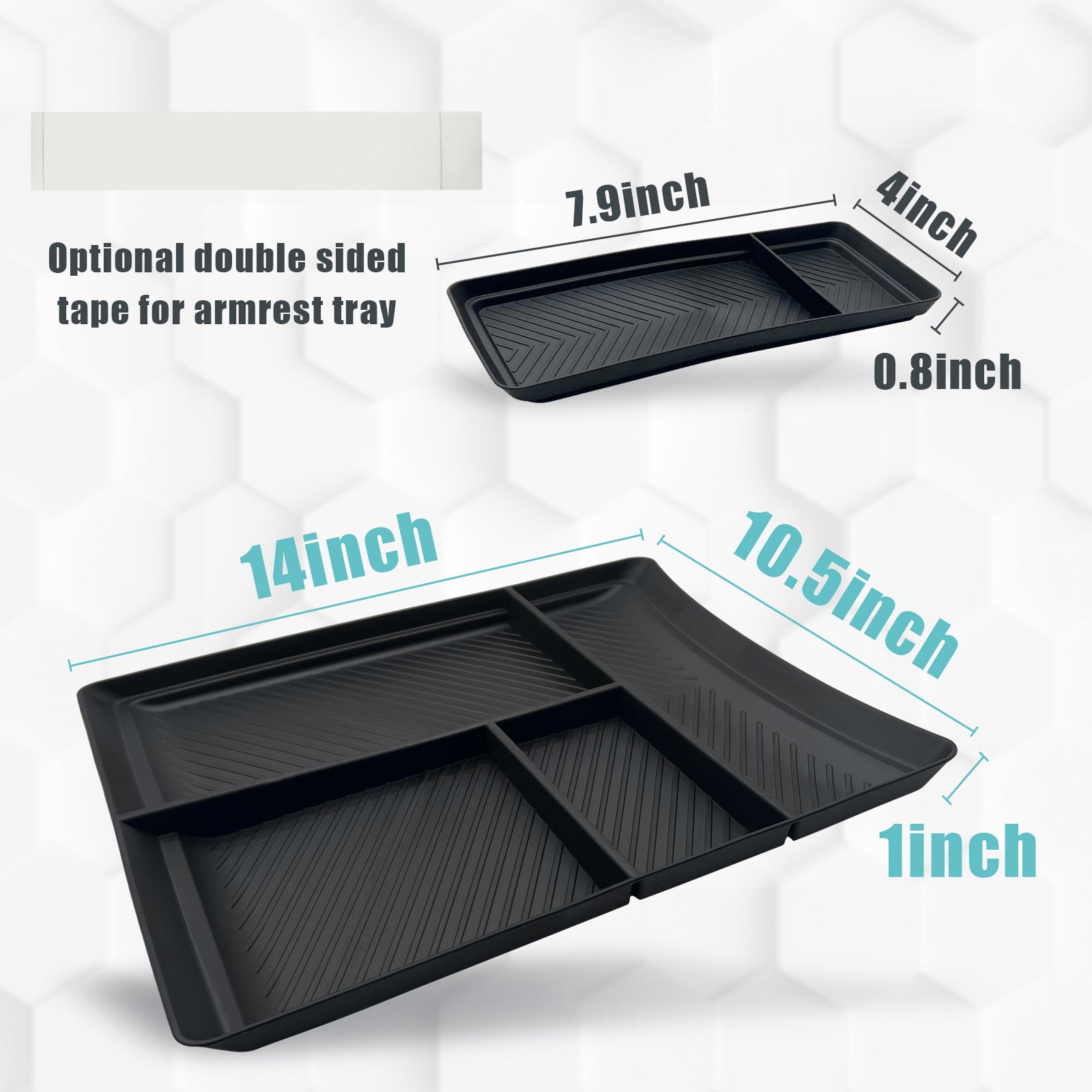 Easy to Install: No tools needed. It can be installed directly. Simply put the tray into the lower console area and armrest console area. [Note: We include optional double-sided tape for our armrest tray, please use it according to your need.]