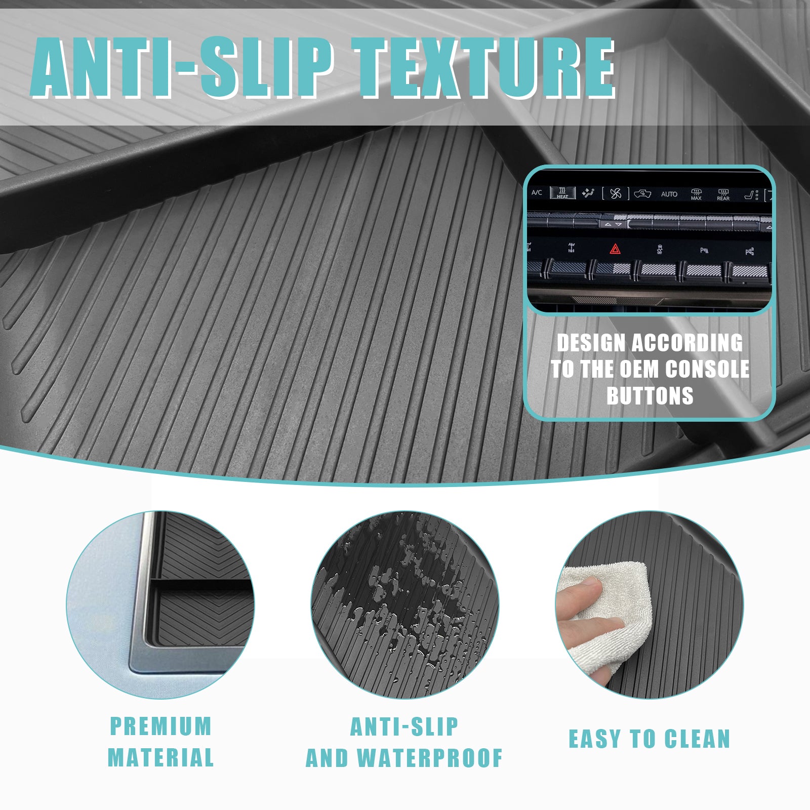 Function: Maximize the storage space and organize your items such as sunglasses, purse, napkin case and other daily items. Protect your interior from scratches while organizing your items neatly. The anti-slip texture avoids your items from rattling and sliding around. And make it easy to clean the interior, no more afraid of liquid spill on the Hummer EV