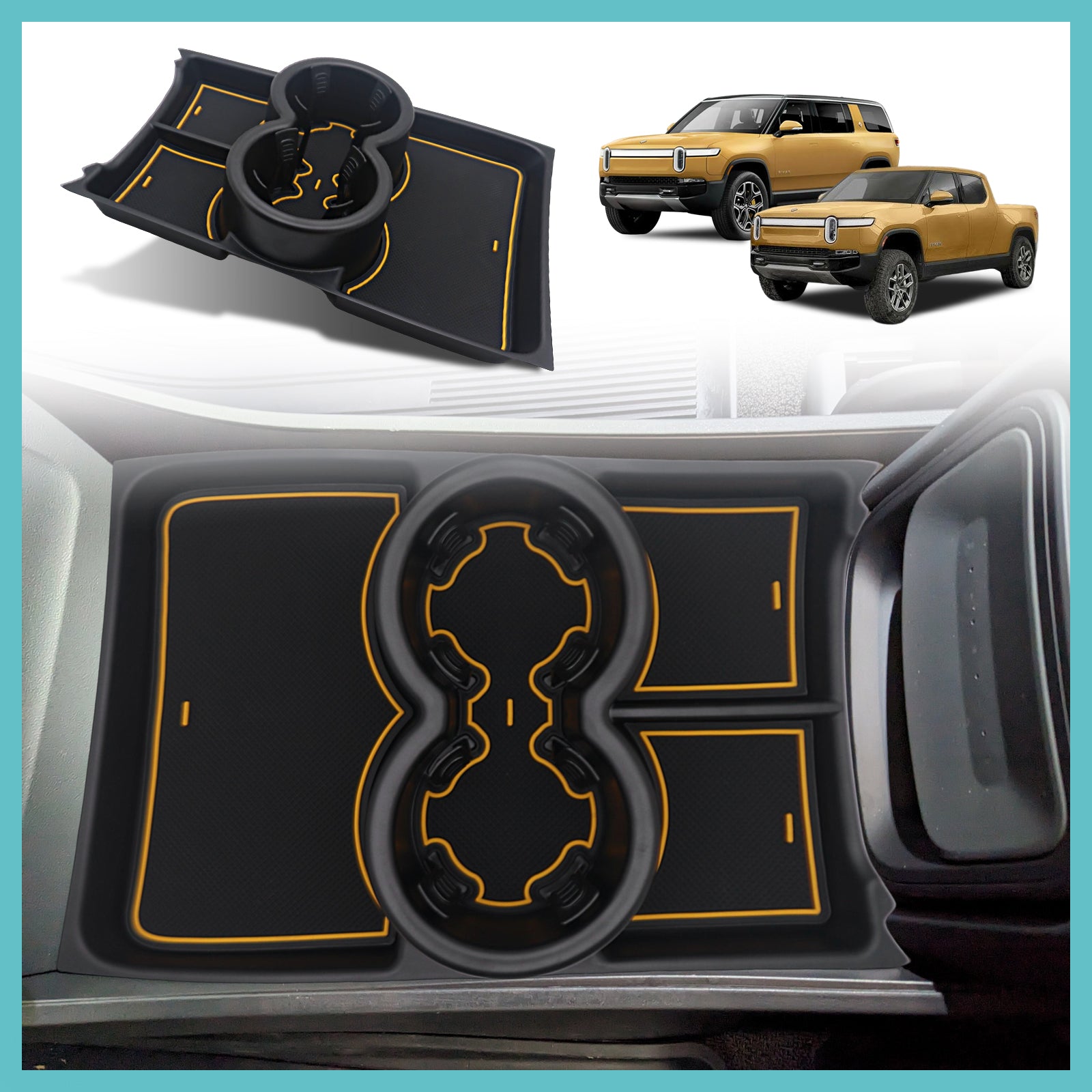 Compatible with Gen1 Rivian R1T R1S Lower Center Console Organizer Tray with Large Capacity Drink Cup Holder from BestEvMod